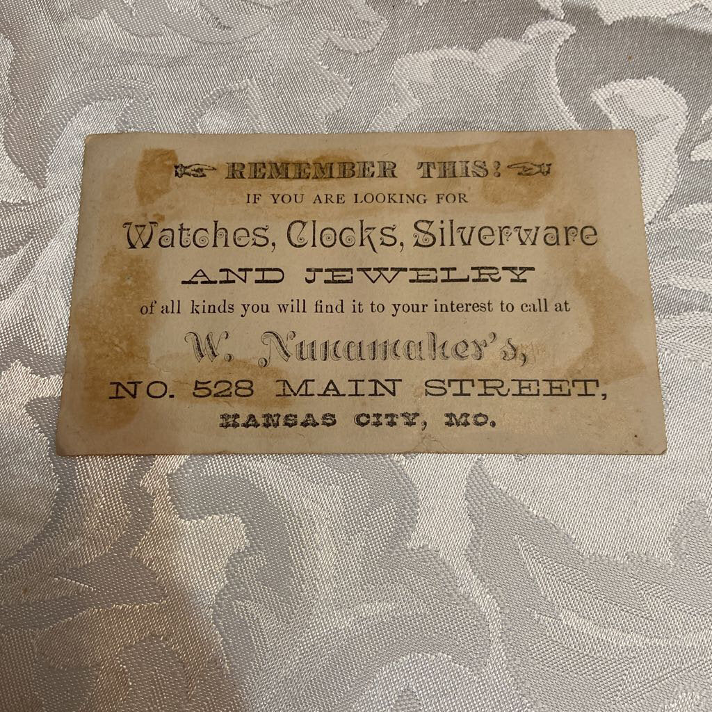 Antique Victorian Trade Card Jeweler Nunamaker