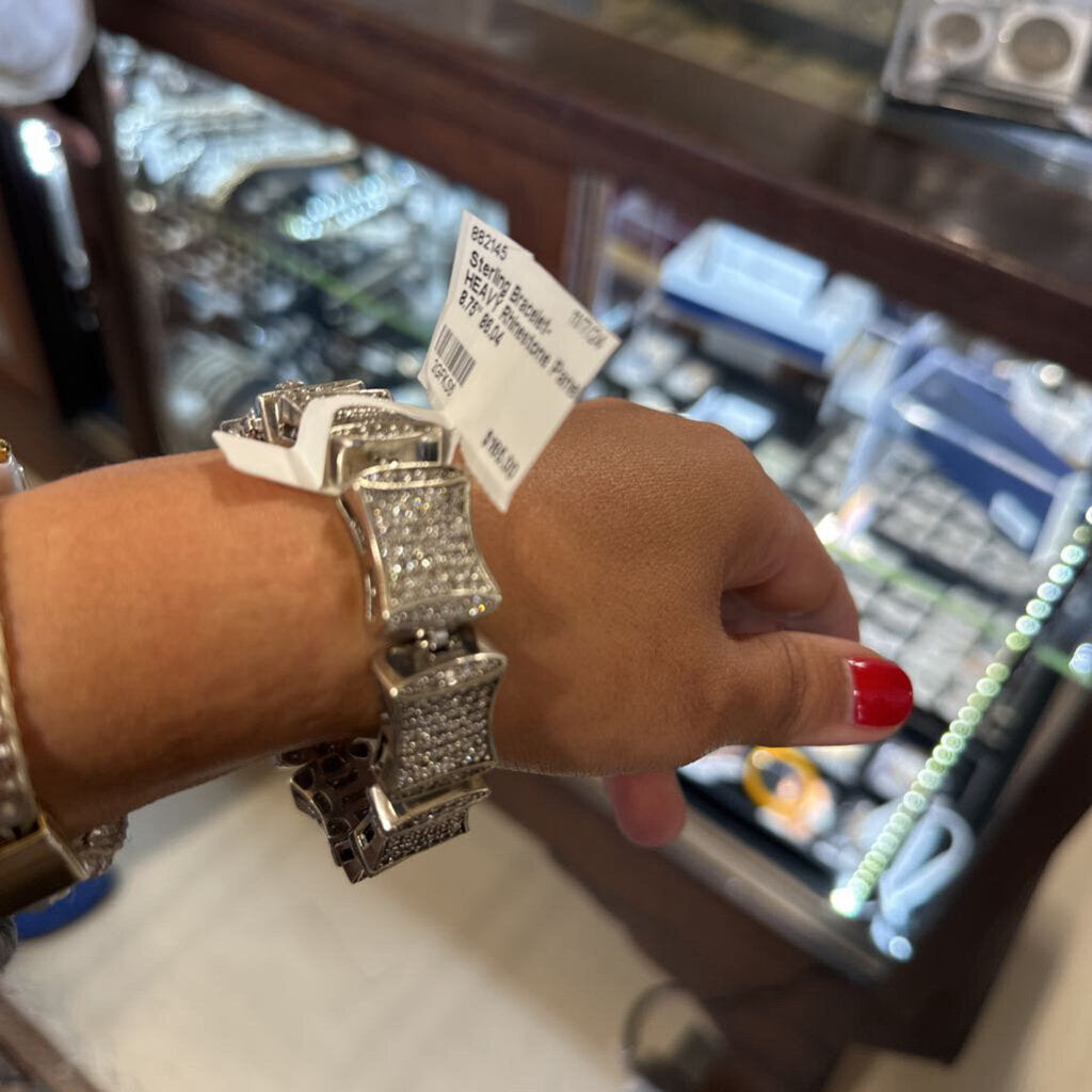 Sterling Bracelet-HEAVY Rhinestone Panel 8.75" 86.04